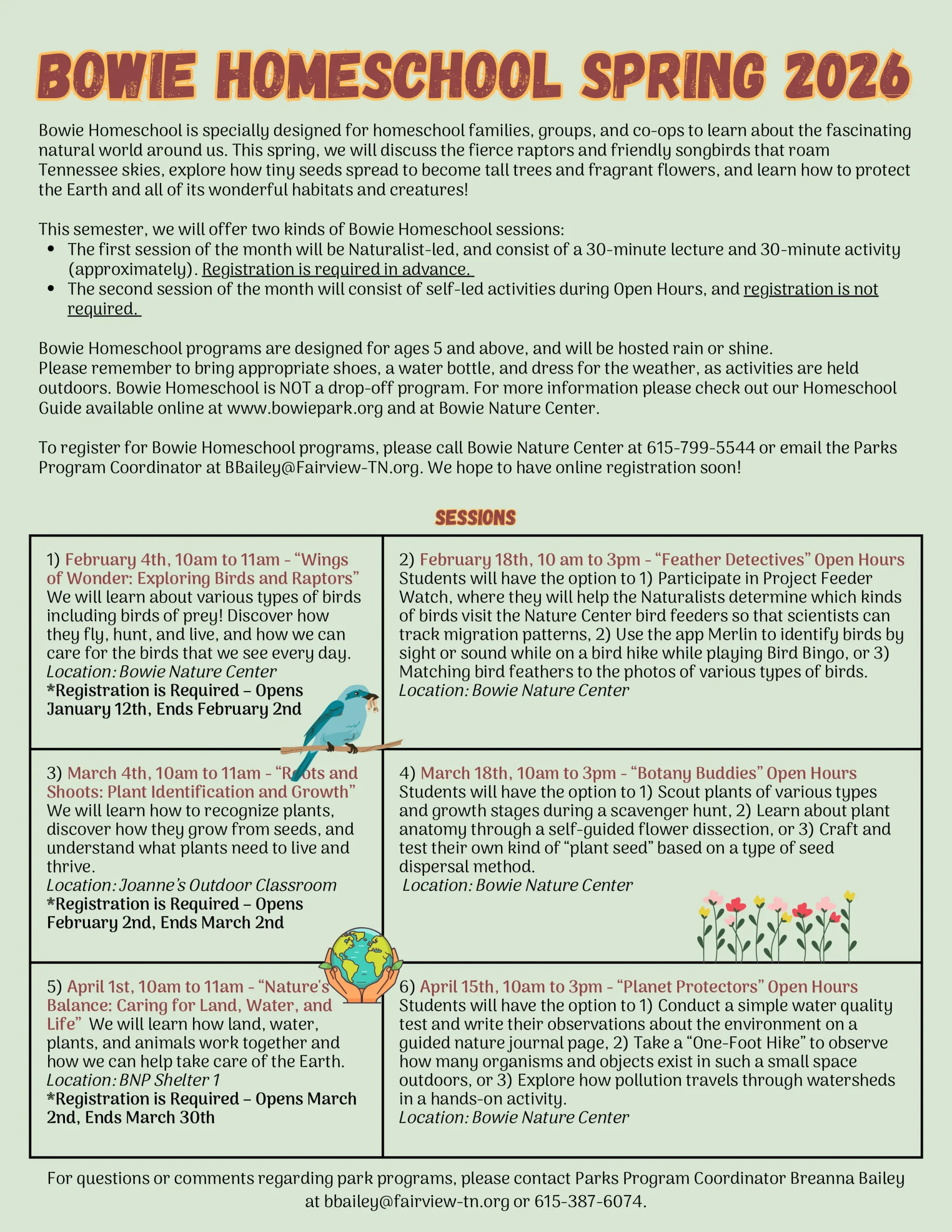Nature Center & Trail Closure Info Call: (615) 799-5544